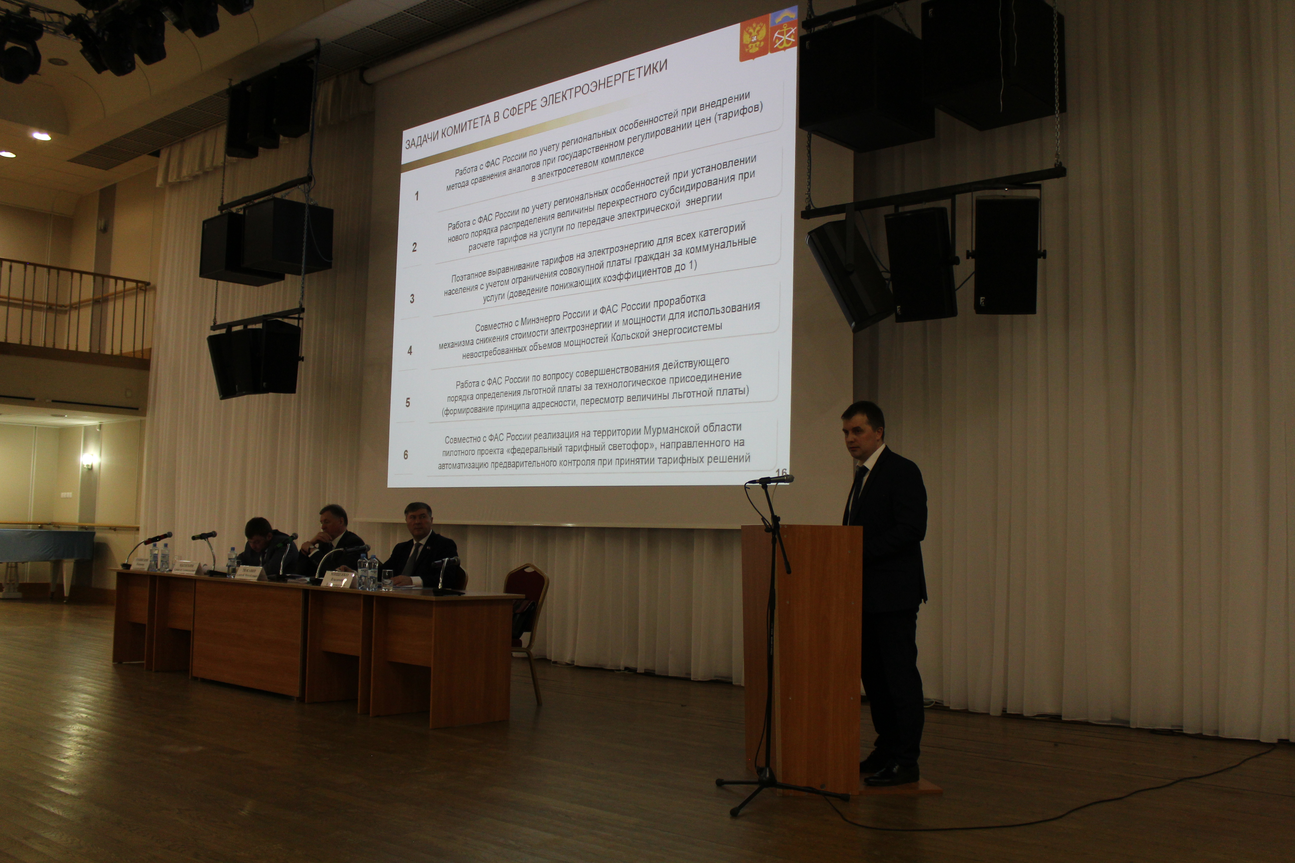 Работу семинара возглавил Первый заместитель Губернатора Мурманской области А.М. Тюкавин, который выступил с приветственным словом к участникам мероприятия, обозначив основные цели и задачи в сфере тарифного регулирования. Среди них, в частности защита интересов и прав потребителей, обеспечение доступности услуг регулируемых организаций, соблюдение баланса интересов потребителей, ресурсоснабжающих организаций и регионального бюджета, установление долгосрочных тарифов с целью обеспечения стабильного и устойчивого развития предприятий и организаций, создание условий для развития конкуренции на территории региона